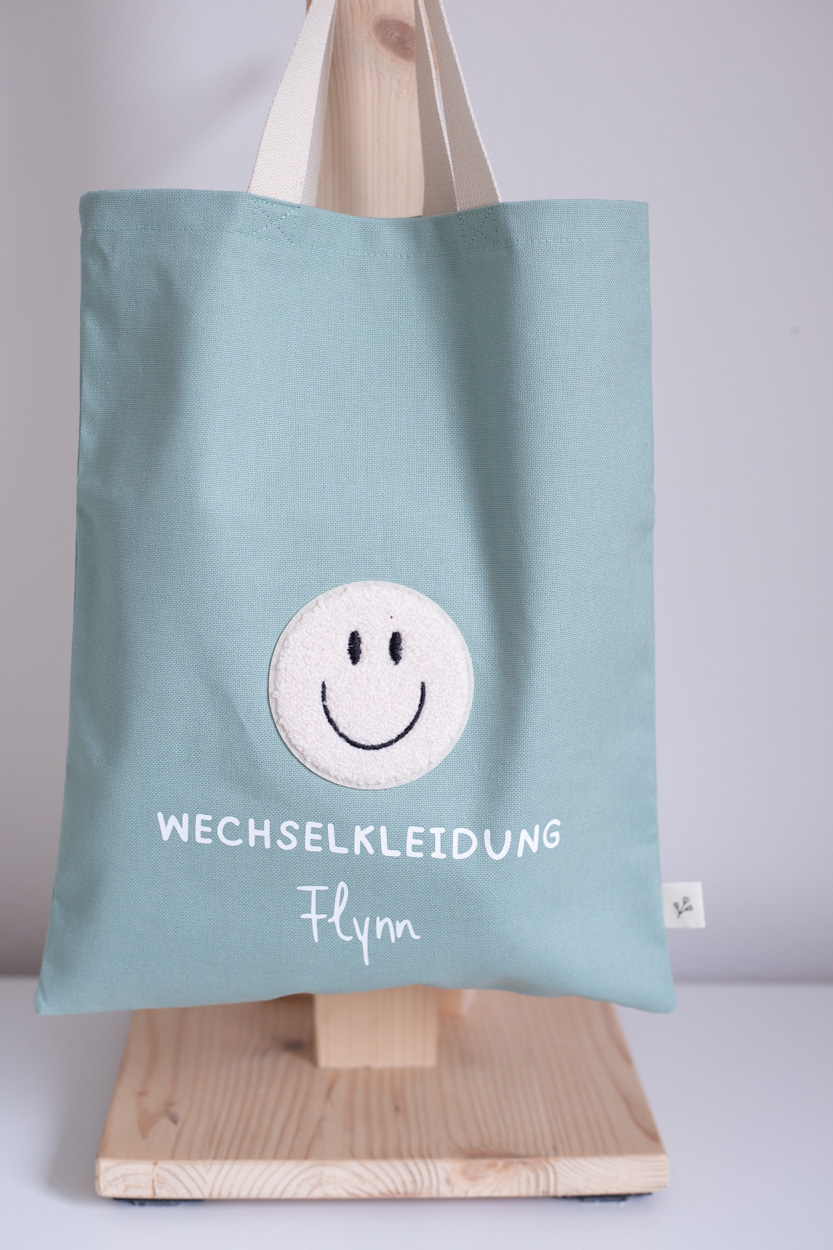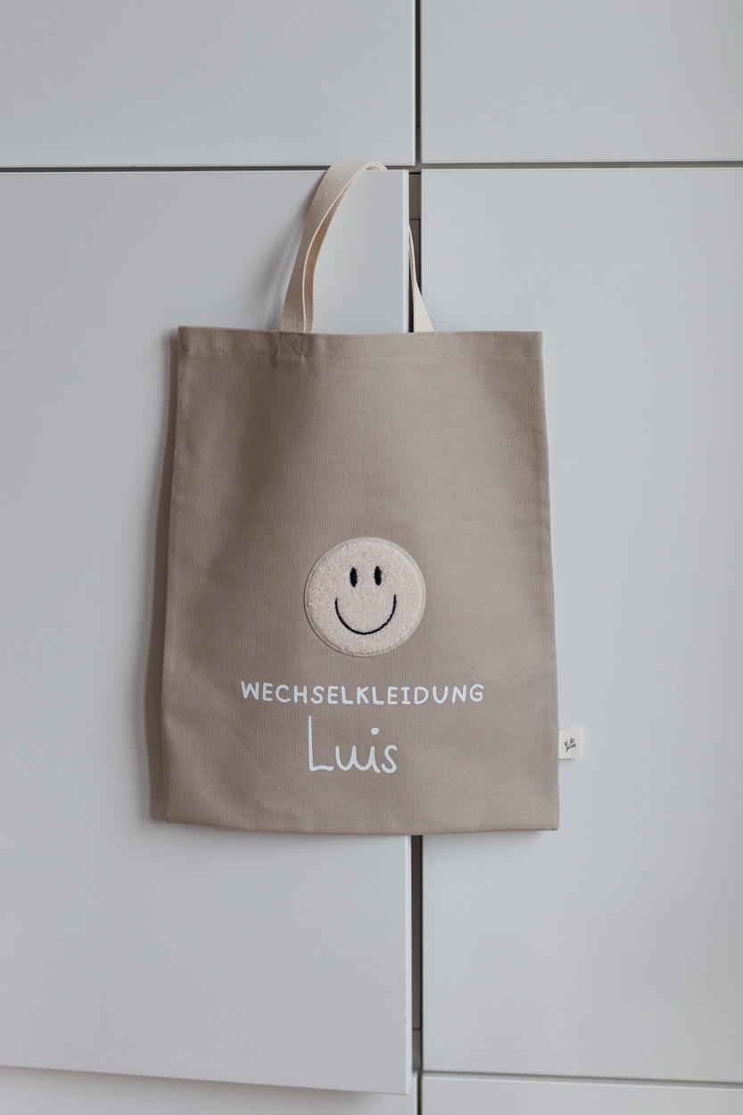 Personalisierte Stofftasche für die Wechselkleidung für die Kleidung der Kleinen im Kindergarten oder in der Krippe.